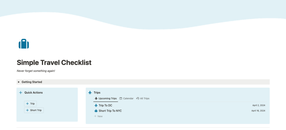 This minimalistic travel checklist system is set up to make it easy to create new checklists for trips and manage them in Notion. You can set up different templates for different types of trips so that you can pack the perfect amount of clothes for each trip!